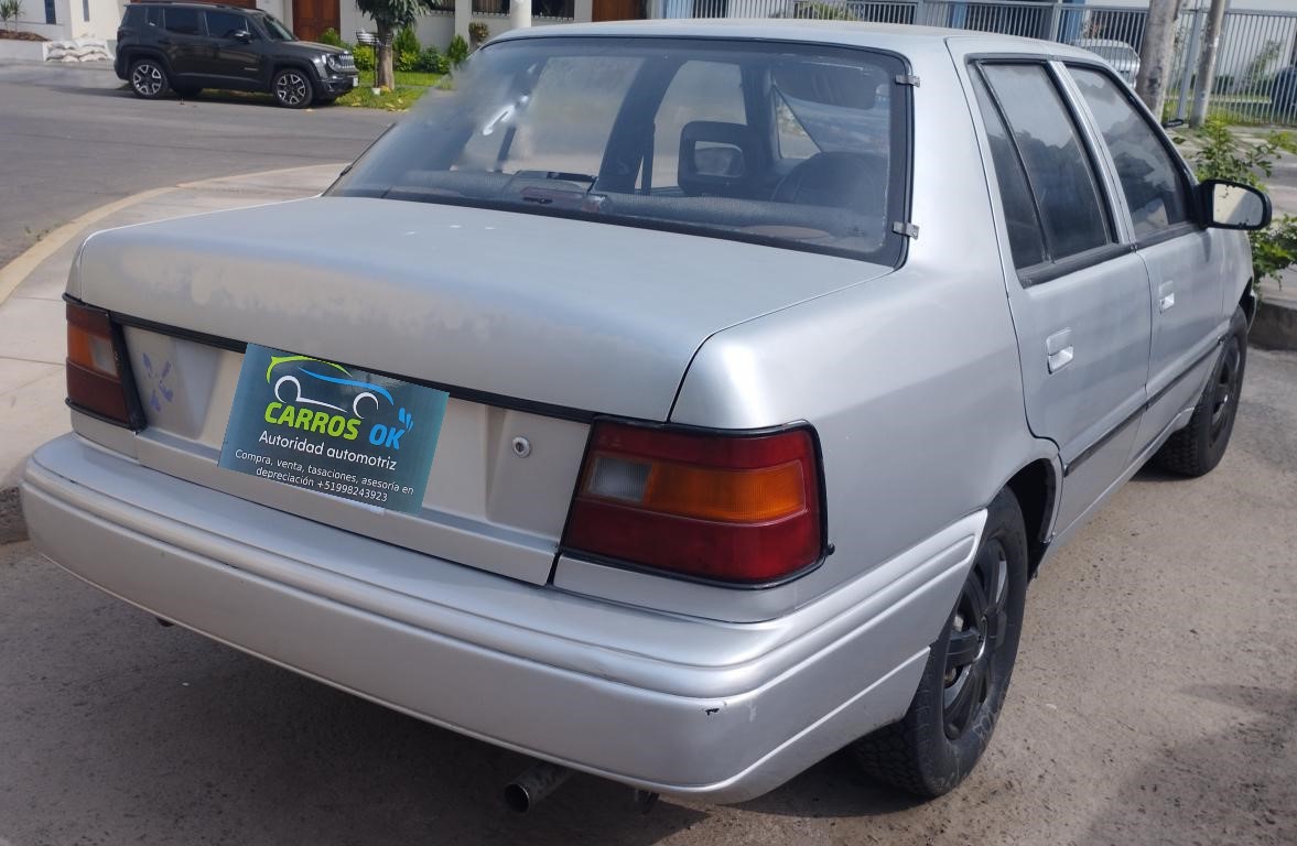 Vendo Hyundai Excel fabricado en 1992 con motor de 4 cilindros, 1500 cc, 84 caballos de potencia medidos en CV, 12.5 kgf-m de torque, alimentado por carburador con gasolina desde 90 octanos denominada actualmente en Perú como regular, trasmisión mecánica de 4 velocidades adelante una atrás, carrocería sedán de 4 puertas con maletera espaciosa.